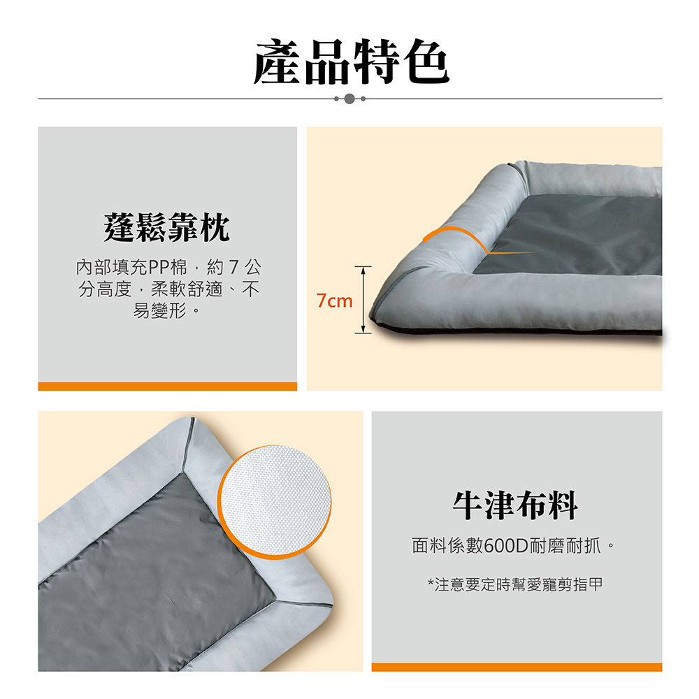 四邊蓬鬆靠枕,毛孩怎麼躺都舒適