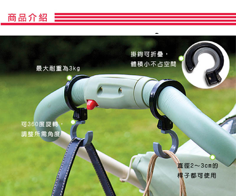 當媽媽推著寶寶外出時,可以輕鬆將尿布袋、手提包等掛在嬰兒車上面