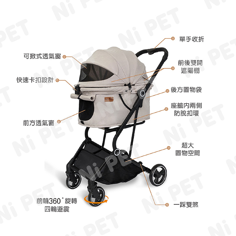 【Ni Pet】T250 高景觀寵物推車-豆綠