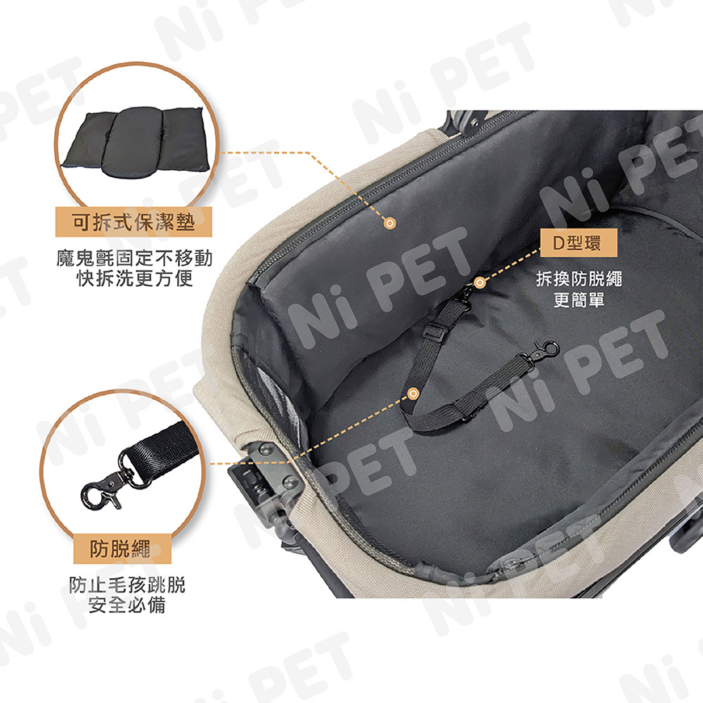 座艙內2側安全扣環,寵物不易掙脫